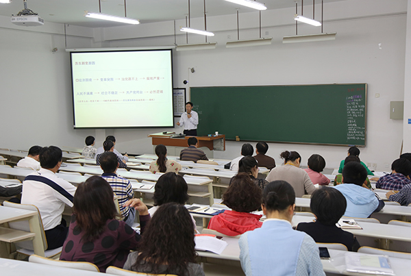 闫振存教授介绍了习近平总书记“7·26”重要讲话的背景和重大意义,从高举中国特色社会主义伟大旗帜、中国特色社会主义进入新的发展阶段、“三个牢牢把握”、决胜全面小康“三大攻坚战”等几个关键点对总书记重要讲话内容进行了剖析。报告内容深入浅出,案例生动鲜明,机关第一党总支书记李力表示,习近平总书记“7·26”重要讲话具有深刻的政治意义、理论意义和实践意义,全体教职工要结合此次辅导内容学深学透,进一步增强“四个意识”,立足本职工作,不忘初心,继续前进。