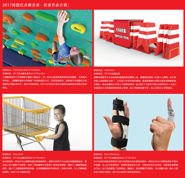 红点设计大奖是公认的世界最大型、最具权威性的设计竞赛之一,下设产品设计、传达设计、设计概念三大不同类别的奖项,参赛的作品因其达到设计品质的极高境界而被授予红点奖。从2008年设计学院实施“问题导向”教学模式以来,参加国际知名设计竞赛成为学生寒暑假社会实践、团队合作与技能训练的有效载体,经过近十年实践探索,以赛代练的方式不但开阔了学生视野,迅速提升动手能力、合作能力和创造力,更让学生自信地走上国际设计竞赛的领奖台上展示自己。本年度的获奖作品依然秉持关注儿童、关注弱势群体、关注未来生活方式、关注灾难救助等主题,得到竞赛评委一致好评。