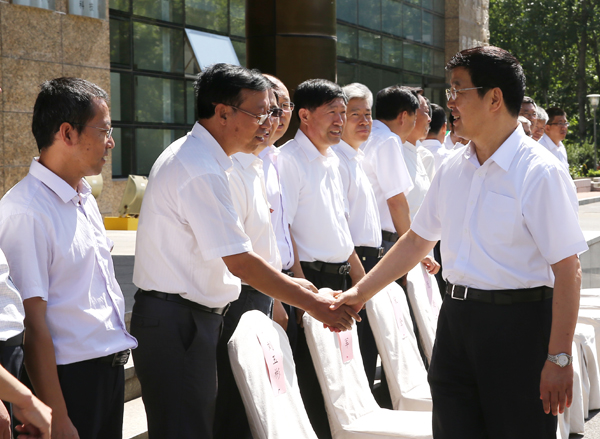 在校期间,巴特尔亲切会见了学校教师代表,并与大家合影留念。