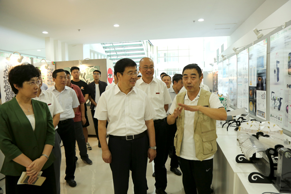 在参观设计学院教育教学成果展时,巴特尔全面了解了学院在农村问题、儿童教育问题等方面的探索实践以及各专业方向的创新成果,对学院从社会根本性和普遍性的问题中寻找研究课题,确定教学内容,解决实际问题的教学思路,引导学生边学边做边创新,在作品中体现爱心和善良的教育理念给予肯定,希望学院做好相关设计产品的宣传推介工作,加强与社会各方面的协作。