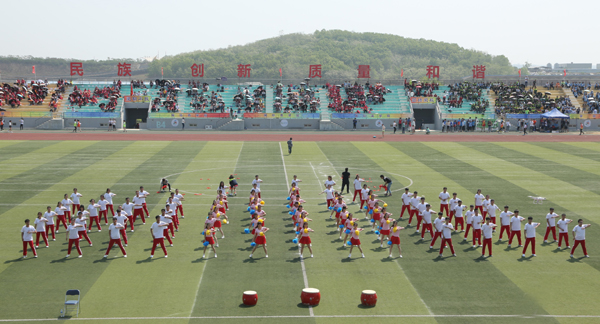 陈明华代表学校对大会的召开表示热烈祝贺,向参与本次运动会的运动员、裁判员、志愿者致以诚挚问候,向多年来指导、关心、支持学校体育运动的各位领导和广大师生表示崇高敬意和衷心感谢。陈明华在讲话中对学校体育工作取得的成绩做了回顾,希望各族师生积极响应党和国家的号召,积极参加体育运动,用好春季运动会的平台,赛出健康、赛出精神、赛出团结,以运动强健个人体魄、以运动构筑健康中国,力争为建设特色鲜明的高水平现代化民族大学,为实现中华民族伟大复兴的“中国梦”努力奋斗。