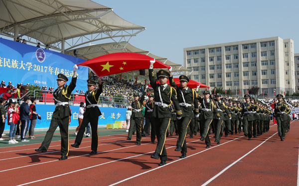 来自全校35个师生代表队、1500余名运动员接受了检阅。升旗仪式后,裁判员、运动员代表分别宣誓。