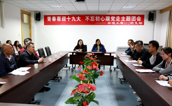 民大新闻网讯 根据学校团委“一学一做”教育实践部署和安排,5月3日下午,环境与资源学院环境工程152班团支部组织召开“青春喜迎十九大,不忘初心跟党走”主题团会。党委副书记王晓华,环境与资源学院院长吕国忠、党总支书记李华戎,学院班导师、辅导员参加团会。