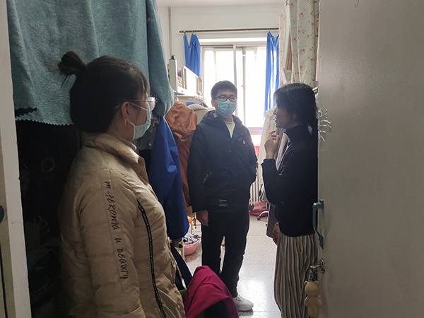 建筑学院辅导员深入学生寝室,及时摸清班级同学线上学习情况与心理状态,督促学生认真学习,端正学生学习态度。