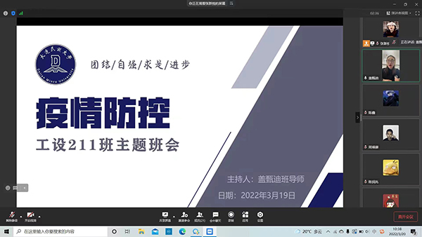 为积极响应学校封校期间教学工作的部署和要求,扎实推进学生线上教学工作,全体辅导员积极行动,通过开展抗疫“云班会”、战役“微活动”,发布线上学习倡议书等活动,引导学生调整新学期学习状态,积极转变学习观念,主动适应新的授课方式。同时根据线上课堂的特点,加强学生的出勤引导和管理,创新云课堂的考核与管理方式,协同任课教师共同提高“云课堂”教学质量,当好学生“云端”学习引路人。