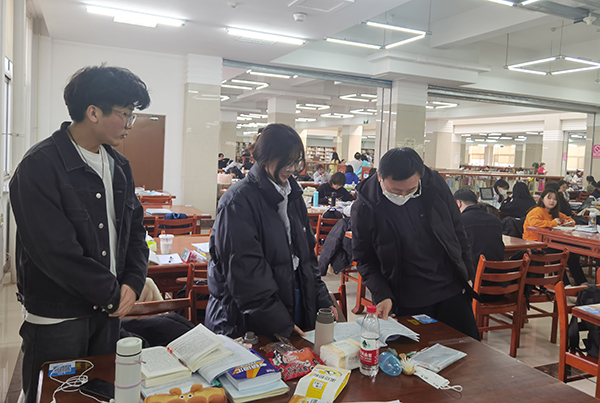 图书馆直属党支部落实主体责任,加强人员管控,多措并举做好疫情防控工作。6名馆员住校,坚持24小时疫情防控指挥值班体系,做到任务到岗、责任到人。通过官方微信平台开展线上信息素养竞赛、线上书法、篆刻作品联展等丰富多彩的阅读活动,将最优质的阅读资源推荐给广大读者,让书香常伴,同心战“疫”。