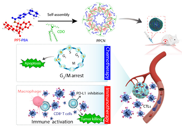 药物治疗是癌症临床治疗的重要手段,无论是化学药物还是天然产物药物,都需要一种递送系统保护和递送药物进入肿瘤细胞,实现药物抑制肿瘤作用。天然药物鬼臼毒素具有抑制微管蛋白聚合的作用,可抑制肿瘤生长。但其水溶性差及巨大的毒副作用,极大限制了鬼臼毒素在癌症治疗中的应用。据此,研究团队开发了一种负载鬼臼毒素的脂质纳米粒递送系统,该递送系统不仅能发挥鬼臼毒素的药物治疗作用,还可抑制程序性细胞死亡配体1(PD-L1)的产生,促进肿瘤特异性免疫反应,通过药物治疗和免疫治疗联合增效,抑制肿瘤生长。此外,该递送系统对细胞和小鼠均无明显毒性。该方法为鬼臼毒素的抗肿瘤治疗提供了新思路。