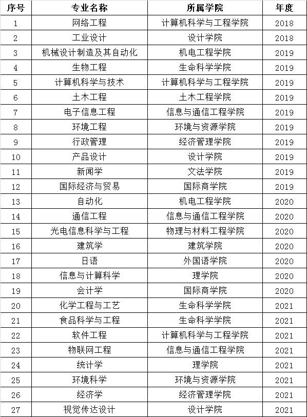 学校省级一流本科专业建设点名单