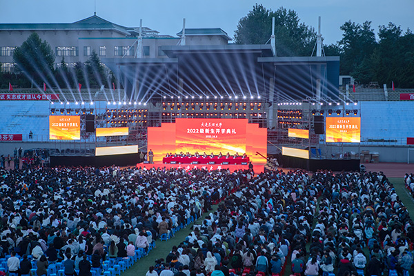 民大新闻网讯 喜迎二十大,启航新未来。10月8日,学校举行2022级新生开学典礼。2022级全体本科新生、预科新生和硕士研究生新生齐聚体育场,共同开启崭新篇章。