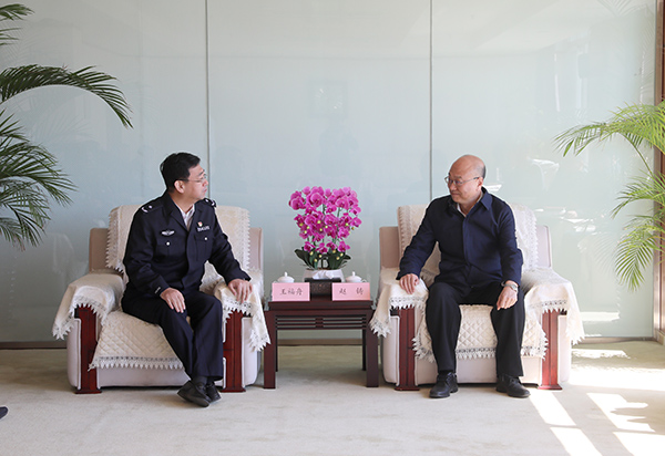 赵铸对王福舟一行来校调研表示欢迎,对大连市公安局经济技术开发区分局长期以来给予学校的支持和帮助表示感谢。他表示,学校是国家唯一设在东北和沿海开放地区、以工科为主多学科协调发展的民族高等学校,坚持以铸牢中华民族共同体意识为主线,努力建设高水平现代化综合大学。学校始终高度重视校园安全稳定工作,以“时时放心不下”的责任感,多措并举筑牢校园安全防线。希望双方继续加强沟通交流,强化工作协同,进一步提升应对突发事件的处置能力,确保师生学习生活安全和健康成长,保障校园安全稳定。