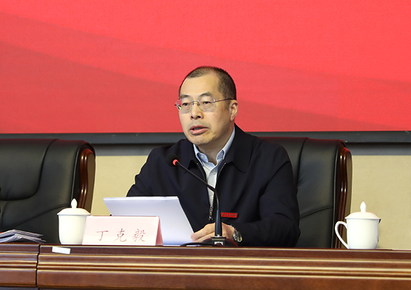丁克毅就落实“两个要点”和新修订的“十四五”发展规划以及落实开学工作具体措施,从坚持不懈用习近平新时代中国特色社会主义思想凝心铸魂,把铸牢中华民族共同体意识贯穿教书育人全过程,深化全面从严治党工作,深化意识形态和思想政治工作,深化综合改革,抓好学科专业设置调整优化,持续抓好本科生和研究生教育工作,抓好大学治理和校园布局优化与功能完善,持续推进平安校园建设,加强管理工作,保障各项工作落实到位等方面对全年重点工作进行了具体布置。
