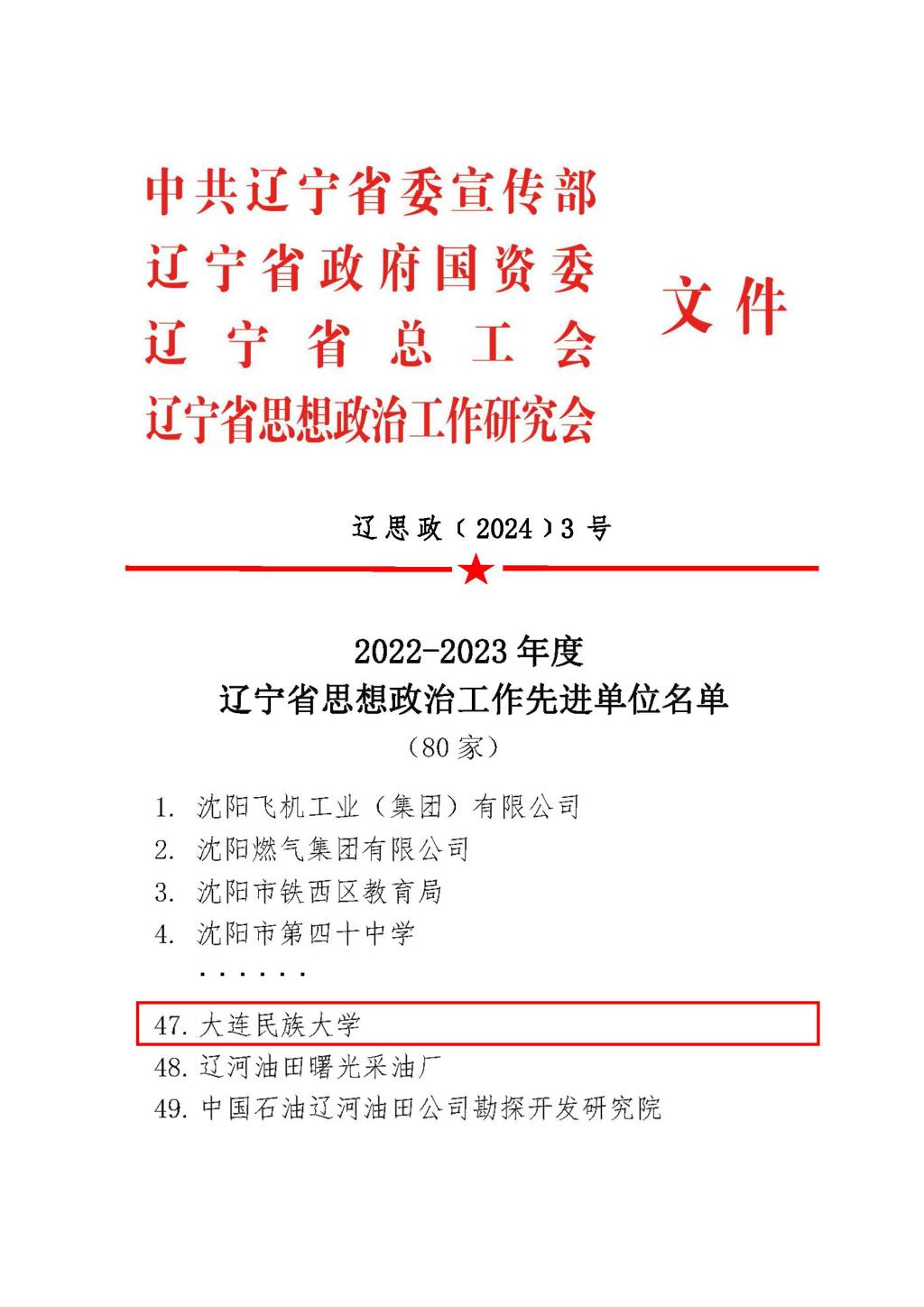 民大新闻网讯  日前,辽宁省委宣传部、省国资委、省总工会、省政研会等四部门联合发文,对2022-2023年度思想政治工作先进单位和先进个人进行表彰,bat365荣获“辽宁省思想政治工作先进单位”荣誉称号。