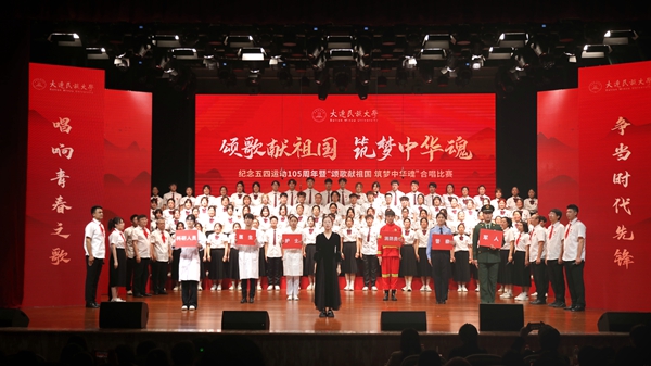 民大新闻网讯 为激励青年学子传承和发扬“五四精神”,厚植爱党、爱国、爱社会主义的情感,有形有感有效推动铸牢中华民族共同体意识工作,4月27日下午,学校在开发区校区太阳鸟报告厅举办纪念五四运动105周年暨“颂歌献祖国 筑梦中华魂”主题歌咏比赛。党委书记赵铸、校长丁克毅,党委常委,校领导,以及相关职能部门负责人、2000余名师生代表参加活动。