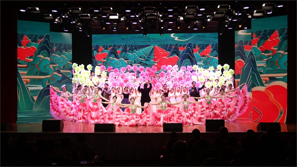 文法学院师生以饱满的热情,嘹亮的嗓音演唱了《唱支山歌给党听》、《灯火里的中国》,师生将把中华民族共同体意识根植于内心深处,弘扬中华优秀传统文化,以实干担当续写新的华章。