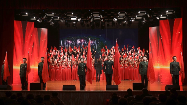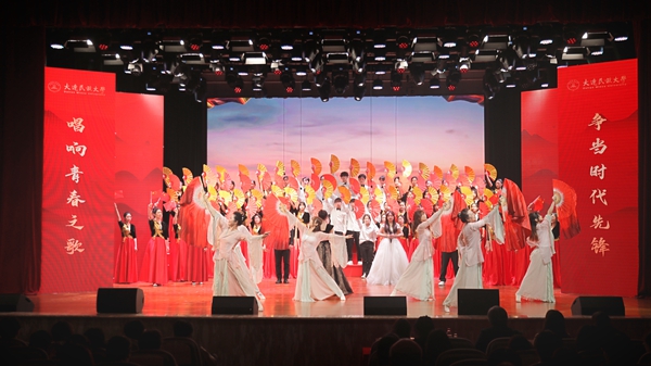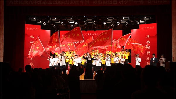 计算机科学与工程学院演唱了《伟大的中国伟大的党》,参演师生以昂扬向上的精神面貌,慷慨激昂的歌声,展现了新时代民大师生的奋进姿态。