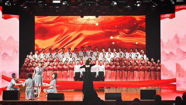经济管理学院师生演唱了《向往》,师生同台演绎经典,以激昂合唱凝聚奋进力量,以深情朗诵涵养家国情怀,表达了对党和祖国的无限热爱。