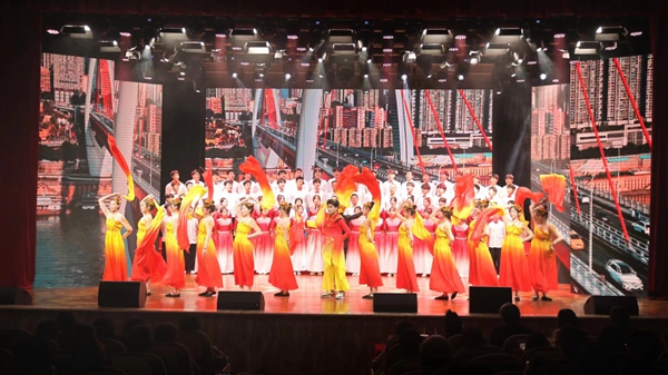 土木工程学院师生演唱了《中国之梦》,以嘹亮的歌声、优美的舞姿、丰富的舞台设计表达学院学子将坚定理想信念,争做铸牢中华民族共同体意识的践行者,书写亮丽青春答卷。
