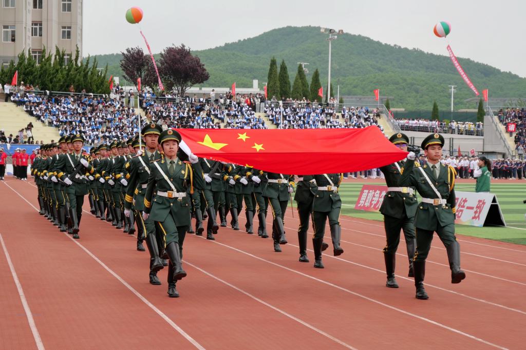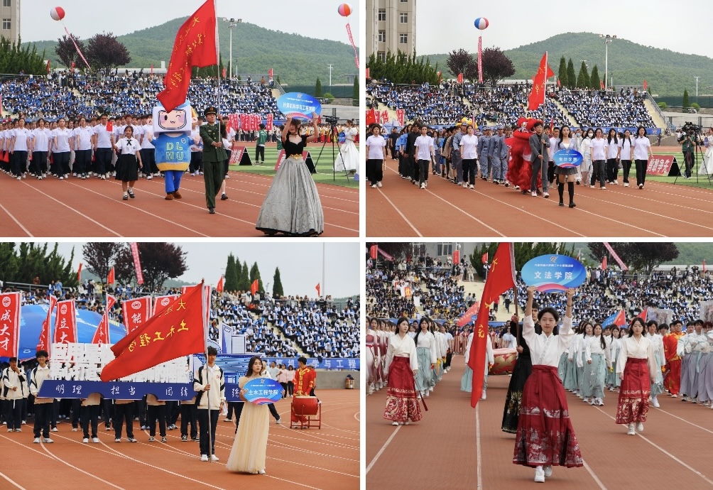 伴着《运动员进行曲》,国旗方队、彩旗方队、裁判员方队与各单位33个师生代表队、1835名运动员迈着整齐划一的步伐依次入场接受检阅,精神抖擞。