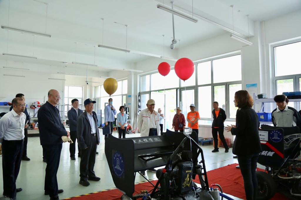 参观考察期间,老领导一行深入金石滩校区新征地块扩建项目体育馆项目施工现场,听取了对金石滩校区扩建项目工程规模、设计理念、施工进展等方面的介绍,实地走访了金石滩校区北区,参观考察了机电工程学院“民族之魂”大学生方程式赛车队工作室、赛车实训室以及车辆工程专业汽车理虚实一体化实验室等地。