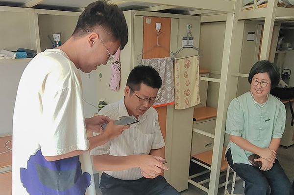 赵铸主动与于鑫琪及宿舍的同学们互留微信,乐呵呵地说道:“bat365中文官方网站就是一个温暖的大家庭,今天开始你们就是永远的民大人,我们是相亲相爱一家人,在学习生活上有困难可以找班导师、辅导员寻求帮助,学校就是你们坚实的后盾。”