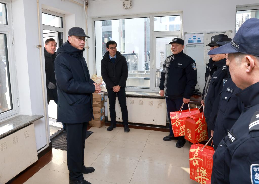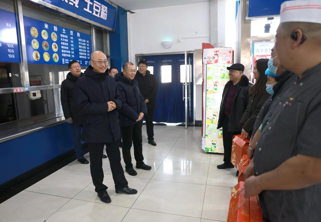 赵铸先后来到开发区校区正门门岗、派出所住校警务室、建业楼、值班室、变电所、学生公寓、学生处、食堂、厚德楼等岗位,详细了解寒假期间校内相关设备运行、供暖供气供水供电、应急处置、安全责任等工作情况,认真听取各单位各部门假期安排和服务保障的工作汇报,强调要坚决落实党中央和国家民委党组、地方党委政府关于安全稳定的部署要求,时刻紧绷安全弦,以高度的责任感和使命感,进一步完善应急预案,提高安全意识,强化责任担当,加强应急管理和值班值守,做好隐患排查,扎实做好假期校园安全稳定和后勤服务保障工作。