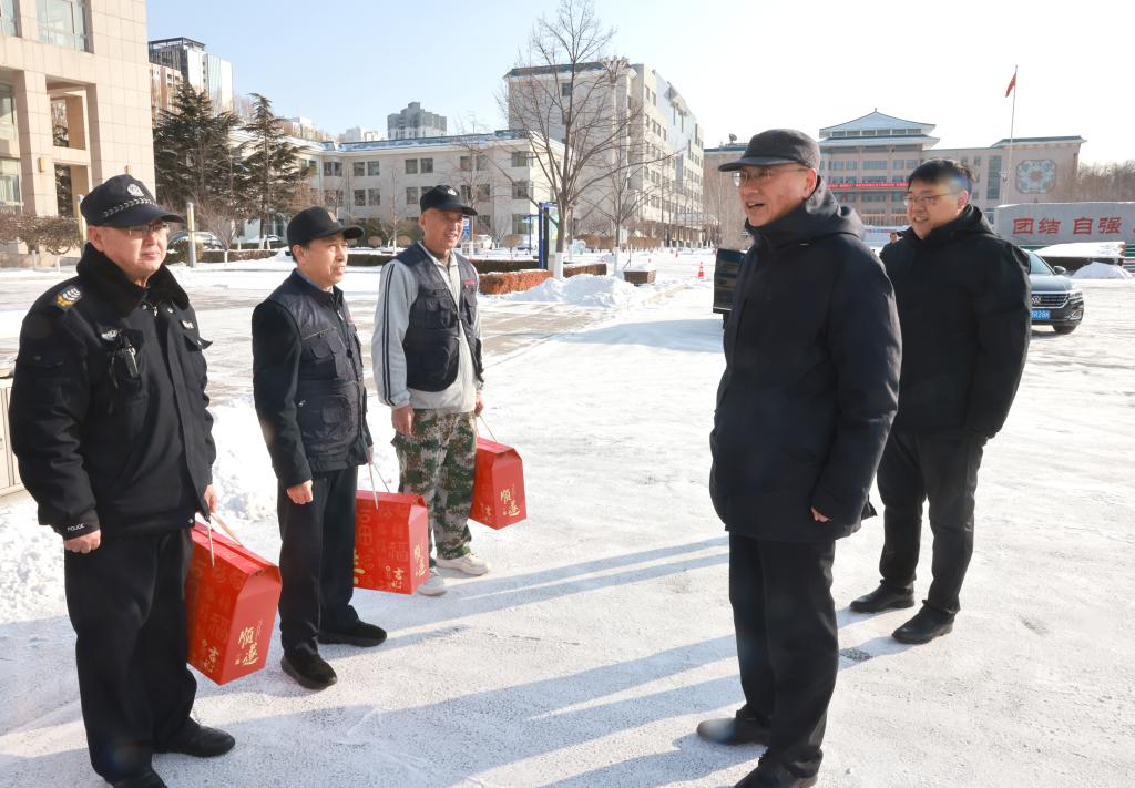 民大新闻网讯 农历除夕的校园一片喜庆祥和的浓浓年味。1月28日上午,党委书记赵铸带队看望慰问坚守一线的教职员工,实地检查安全和值班工作,代表学校党委为他们及其家人送去关怀与温暖,并致以节日慰问和新春祝福。