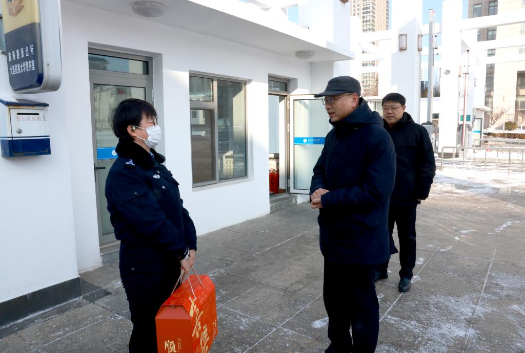 党委副书记、纪委书记赵立涛在金石滩校区看望慰问在岗教职员工并开展实地检查。