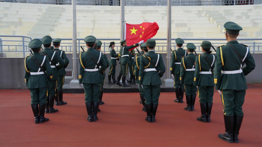 师生整齐列队,精神抖擞。伴随着雄壮的国歌,鲜艳的五星红旗冉冉升起,全体师生面向国旗行注目礼,高唱国歌,用赤诚之心铭记历史,缅怀先烈,汲取奋进力量。