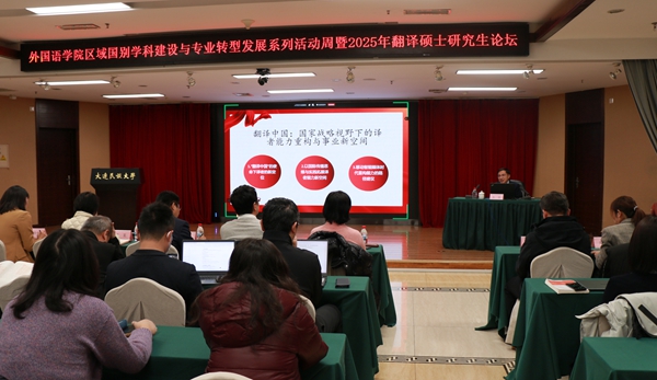 在学校首届翻译硕士研究生论坛上,王浩以“翻译中国:国家战略视野下的译者能力重构与事业新空间”为题作主旨报告。他立足国家战略高度,系统阐述了新时代背景下翻译事业的核心定位与重要价值,深刻剖析了当前译者在能力提升过程中面临的机遇与挑战,清晰勾勒出译者能力重构的实践路径与翻译事业发展的新空间,给在场师生带来深刻启发。