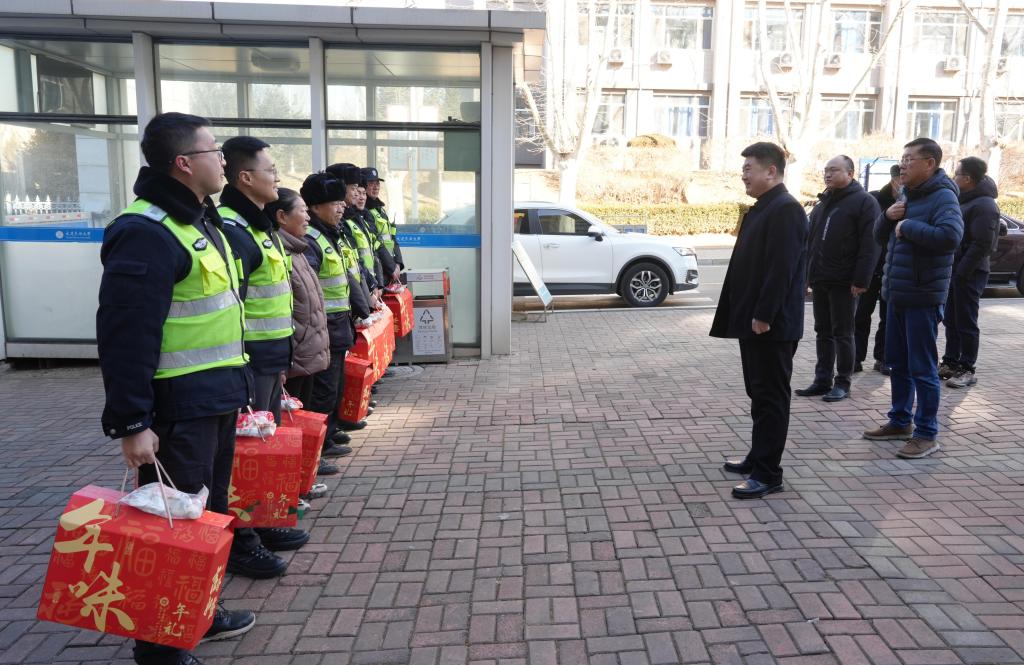 “过年好!”“给大家拜年了!”走访过程中,校领导与在岗教职工亲切交谈,悉心询问寒假期间的工作情况和生活安排,对大家春节期间坚守一线的辛勤付出和敬业精神表示衷心感谢,叮嘱大家要做好防寒保暖,共同度过一个欢乐祥和的新春佳节。