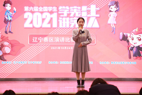 此项活动是辽宁省教育厅、辽宁省司法厅组织开展的2021年度全省教育系统宪法学习宣传教育系列活动之一,比赛通过线上遴选和现场主题演讲、命题演讲的方式,用自己的语言讲述宪法故事,畅谈对宪法的感悟和热爱。刘昊同学以自信镇定的台风,引经据典,逻辑严密,表现出建设并维护法治社会的坚定信念,展现了民大学子健康、积极、向上的精神风貌,为学校赢得殊荣。