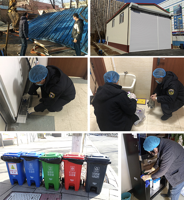 加强物业保洁防控。对于学校办公楼宇走廊、楼梯间、卫生间等公共区域,每天进行2次消毒。对于楼宇中的死角部分用小喷壶喷洒、用抹布擦拭,争取做到无遗漏、无盲点。针对空间更为密闭的电梯间,更是每隔2小时消毒一次。在做好消毒工作的同时做好公共区域的卫生清扫、公共场所开窗通风等工作,确保校园环境干净卫生整洁。为加强疫情防控期间垃圾分类管理,学校设立了废弃口罩专用垃圾桶,并已于近日将开发区校区原有垃圾房进行拆除,启用新垃圾房。