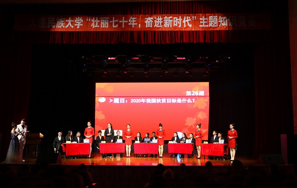 民大新闻网讯 为庆祝新中国成立70周年,弘扬爱国主义精神,激发学生的爱国热情,激励学生更加紧密团结在以习近平同志为核心的党中央周围,把爱国奋斗精神转化为实际行动,11月25日晚,学校“壮丽七十年 奋进新时代”大型知识竞赛在太阳鸟报告厅举行。党委副书记、副校长陈明华,相关部门负责人及马克思主义学院全体教师参加活动。