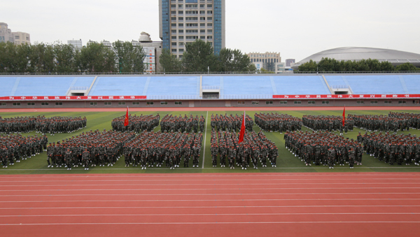 民大新闻网讯 9月12日下午,学校2019级学生军训汇报表演暨总结表彰大会在开发区校区体育场和金石滩校区体育场同时举行。学校党委常委、副校长张维民,党委副书记、副校长陈明华,中国人民解放军93173部队官兵,学校有关部门负责人、各学院主管学生工作书记、新生辅导员及全体2019级参训新生参加大会。