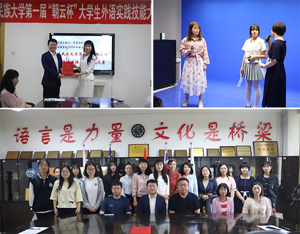 此次“朝云杯”大学生外语实践技能大赛由外国语学院、大连朝云科技有限公司主办。大赛主题为“V视青春、寻梦成长”,共有32组队伍参赛。参赛作品主要围绕专业学习、校园生活、职场奋斗、亲情友情等内容展开,经过前期教师指导、学生小组讨论和集中练习,通过预赛、网上投票、系内评选遴选出10组参加决赛。本次比赛为同学们提供了一个充分展示自己学习成果的平台,对推进学院教育教学改革以及提升学生的学习热情起到了积极作用,同学们纷纷表示,通过参加和观看比赛,更加明确了科技发展下的外语学习的方向和目标,也更加明确了作为新时代的青年大学生的责任与使命,在学校学院提供这么优越的学习环境的基础上,努力学习专业知识,勇于实践,为打造“学在民大”的民大口碑共同努力。