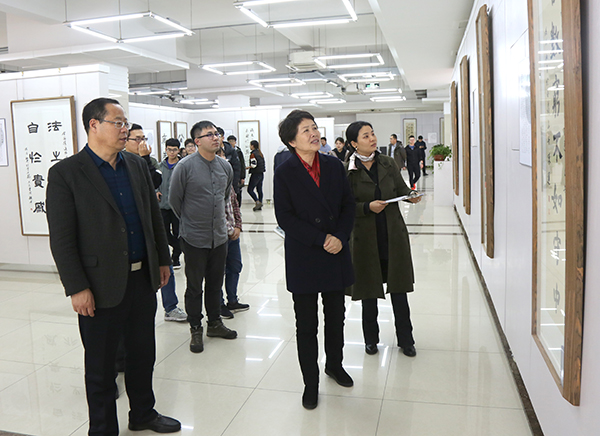 民大新闻网讯 11月28日下午,学校“平‘语’近人——习近平总书记用典”师生书法作品展在金石滩校区图书馆一楼展厅开幕,党委副书记、纪委书记刘锐,学校相关职能部门负责人参加开幕式。开幕式由党委学生工作部副部长孙晶主持。
