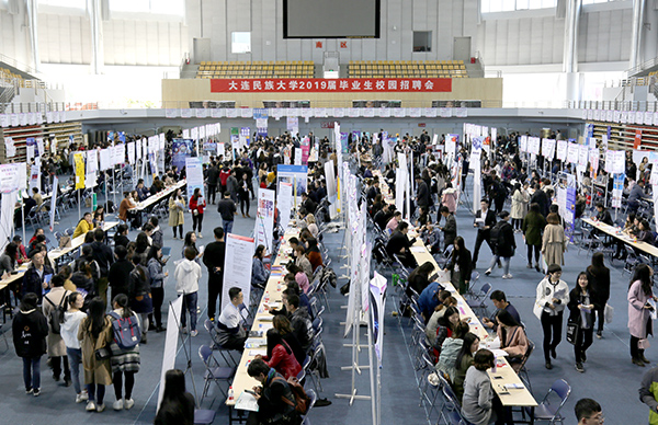 民大新闻网讯 10月27日上午,bat3652019届毕业生秋季招聘会在开发区校区体育馆举行。作为秋季学期规模最大的综合性校园招聘活动,本次招聘会吸引了省内外近300家用人单位参会,为毕业生提供5000多个岗位。