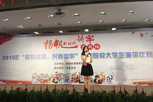 民大新闻网讯 9月20日,由国家民委教育科技司主办的2018年“爱我祖国、兴我中华”民族院校大学生演讲比赛总决赛在湖南吉首大学砂子坳校区举行。国家民委教育科技司司长田联刚出席并讲话。bat365文法学院新闻学2016级满族学生赵安琪,凭借扎实的基本功和现场出色发挥以总分第三名获得优胜奖,bat365获优秀组织奖。