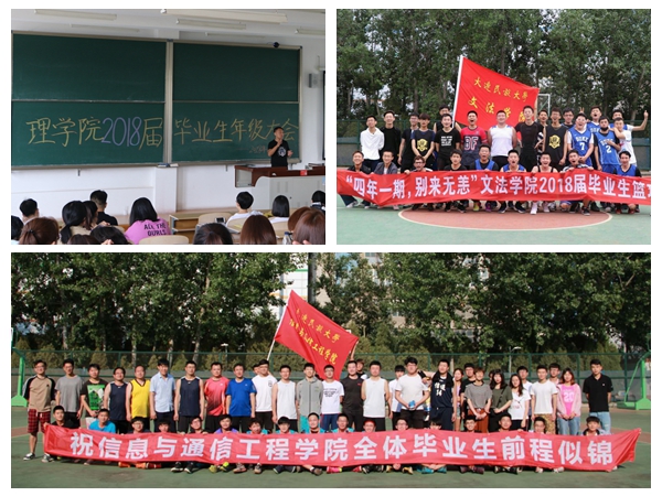 丰富教育内容,创新工作载体。各学院结合实际,开展了形式多样的主题教育活动。物理与材料工程学院开展“忆情物材青春华绽”系列活动,组织毕业生镌刻民大情结,共抒真情切意。文法学院、理学院、信息与通信工程学院等组织师生友谊篮球赛,在赛场上挥洒汗水,加深情谊。土木工程学院通过录制《民大版——纸短情长》主题毕业歌曲、石刻《桃李芬芳》敬赠仪式,深情抒发毕业生对母校的感恩之情。设计学院开展“我的大学四年”“十年愿望”“毕业晚会之夜”“学位证授予日”“毕业手续服务月”等毕业季系列活动,渲染毕业情感,以情动人、暖意款款。