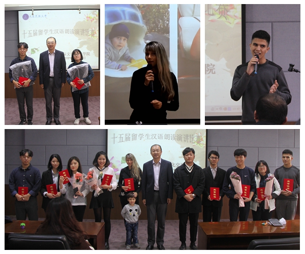 本次比赛分初级组和中高级组两个组别。各位选手根据赛前的抽签依次登台演讲。配合着精心准备的多媒体课件,留学生们积极昂扬的精神风貌赢得了场下的阵阵掌声。不同国家的留学生别具特色的汉语发音,也使得现场气氛跌宕起伏。巴西留学生派德罗讲述了他一年来的留学经历;韩国学生李多勋畅谈了入乡随俗的重要性;俄罗斯留学生玛莲娜的演讲“宝贝,你听我说”更是将现场气氛推向高潮。最终,韩留学生金符经和崔欢喜分获初级组和中高级组一等奖。