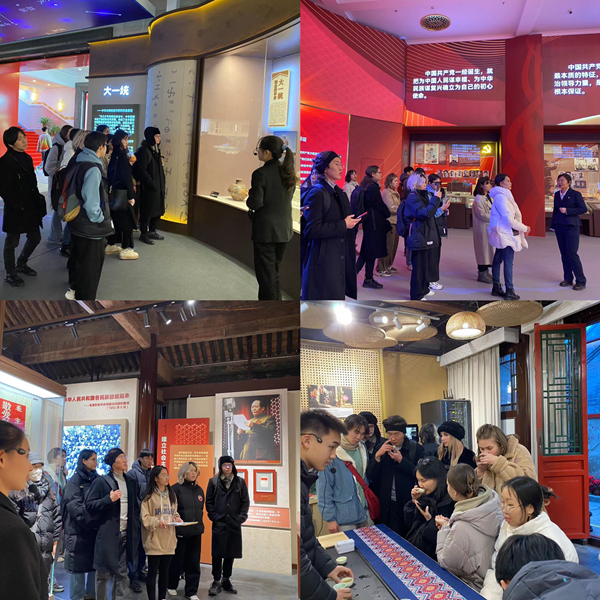 当天上午,师生一行来到铸牢中华民族共同体意识文物古籍展,沉浸式体验了中华民族共同体形成发展的历史长卷。从“大一统”到“大交融”再到“大团结”,1500余件体现“四个共同”的精选文物古籍,展现了中华民族形成发展的历史,讲述着各民族交往交流交融故事。通过参观学习,外籍师生深刻感受到了波澜壮阔的中华民族形成发展历史和博大精深的中华优秀传统文化。