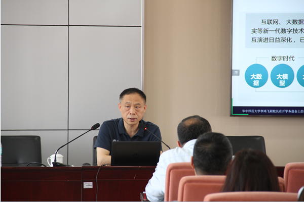 民大新闻网讯 为落实国家教育数字化战略行动部署,进一步深化教育教学改革,提升教师专业发展能力,6月3日,学校邀请华中师范大学教授杨九民、湖南大学教授刘强来校作“融合发展 数字赋能:数字化课程建设与应用”专题培训。党委常委、副校长冯林参加会议并讲话。教师发展与教学评估中心主任袁学刚主持会议。