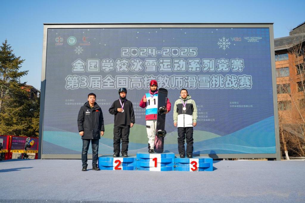 作为国内高校教师滑雪领域的权威赛事,全国教师滑雪挑战赛旨在推动冰雪运动普及,促进教师群体体育文化交流。单板平行大回转项目以赛道难度高、技术挑战性强著称,对参赛者的滑行速度、弯道控制及应变能力要求极高。本次赛事吸引了来自全国11个省份,62所高校的300名教师同场竞技。两位教师凭借精湛技艺奋勇拼搏,在激烈角逐中脱颖而出。