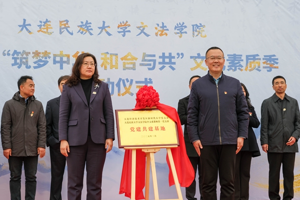 活动现场,王慧与大连新时代小学校长赵青共同为文法学院中文系教师第一党支部和大连新时代小学党支部“党建共建基地”揭牌。中文系教师第一党支部书记张烨代表支部向大连新时代小学副校长汪源东赠送书籍,传递知识薪火,为校际文化交流与教育合作添砖加瓦。