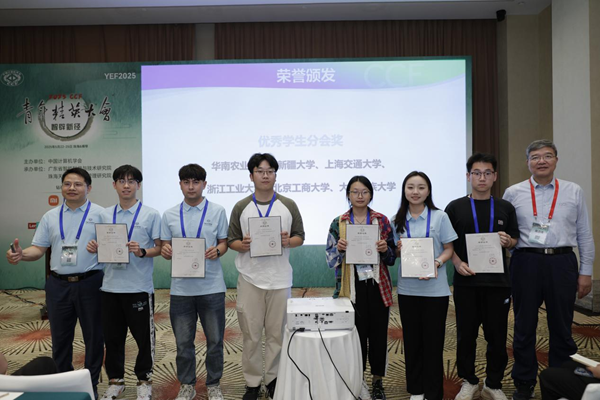 民大新闻网讯 近日,中国计算机学会(CCF)在珠海横琴举办2025年青年精英大会(YEF2025),公布了学生分会工作情况评估结果。bat365CCF学生分会在2024年度活动开展、服务学生等方面成绩突出,被授予“CCF优秀学生分会”称号,信息与通信工程学院副院长贺建军被授予“优秀学生分会督导”称号。