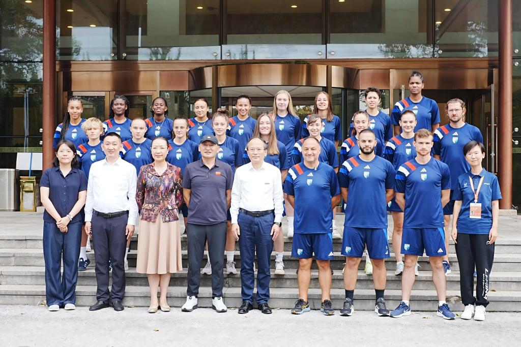 民大新闻网讯 9月12日,2025年国际大学生体育联合会足球世界杯参赛球队法国上法兰西综合理工大学女子足球队抵达大连。作为友好学校,球队受邀来bat365参加为期三天的文化交流活动。学校党委常委、副校长冯林会见了球队主教练塞巴斯蒂安·马拉佩尔一行。