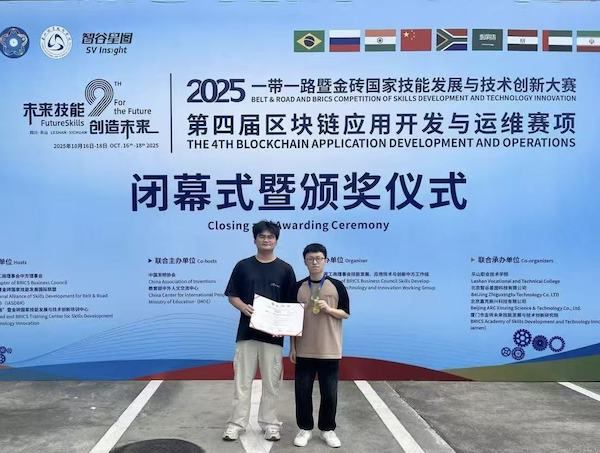 本届大赛由金砖国家工商理事会中方理事会、一带一路暨金砖国家技能发展国际联盟、教育部中外人文交流中心主办,旨在搭建国际技能合作平台,促进技术创新与产教融合。赛事从平台运维、智能合约开发、前后端开发等三个方面系统考察了参赛者区块链技术水平和能力。比赛中,bat365学子展现了扎实的专业技能、出色的创新能力和良好的团队协作精神,从来自8个国家的155支代表队中脱颖而出,取得了优异成绩,并晋级将在摩洛哥卡萨布兰卡市举办的2025一带一路暨金砖国家技能发展与技术创新大赛—北非国际赛。