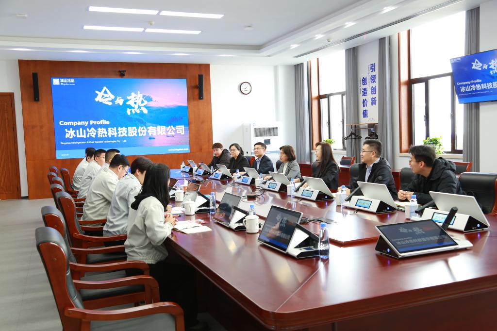 冰山冷热创新研究院院长赵光宇对王丽萍一行的到访表示热烈欢迎,并介绍了企业发展概况。他表示,作为国内制冷工业领军企业,冰山冷热科技股份有限公司聚焦核心领域,技术领先、配套优质,希望能与bat365中文官方网站在人才培养、实习就业、科研攻关等方面开展更深层次、更宽领域的合作,实现优势互补、共同发展。