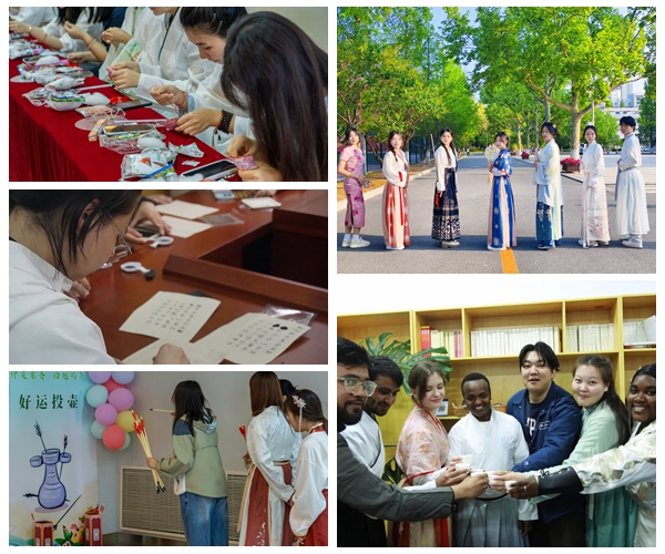 党委宣传部推出的“道中华·中华优秀传统文化沙龙活动”,场场报名“秒光”。国际商学院会计231班的史墨涵深有体会,“看到‘华服秀’那期推送,我立马就喊同学快报名,生怕手慢抢不到名额!”自去年开办以来,这个活动就成了校园里的“香饽饽”。活动还受到了留学生们的喜欢,在本学期第一期“茶韵流芳,雅集共赏”主题活动中,现场参加活动的留学生就占了参与总人数的一半以上。在中国同学的细心指导下,他们饶有兴致地学习着茶艺的每一个步骤,从温杯洁具到注水出汤,一丝不苟。