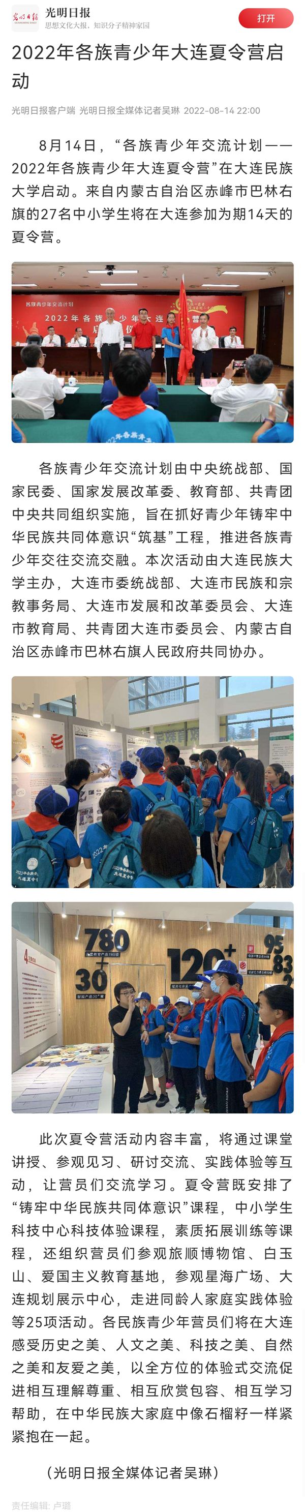 链接:2022年各族青少年大连夏令营启动